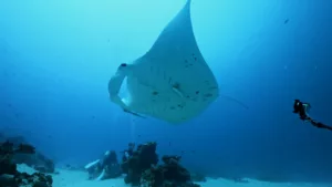 が、タイミングによっては少し深さが入った所から上がってくるのも観察出来たり、なので深度管理はお好きなところで自己管理、な感じになります。深いのは嫌よね、どちらかというと。途中でブルシャークのでかいのが入ってきたりとサプライズもアリ。個人的には好きなスタイルです。