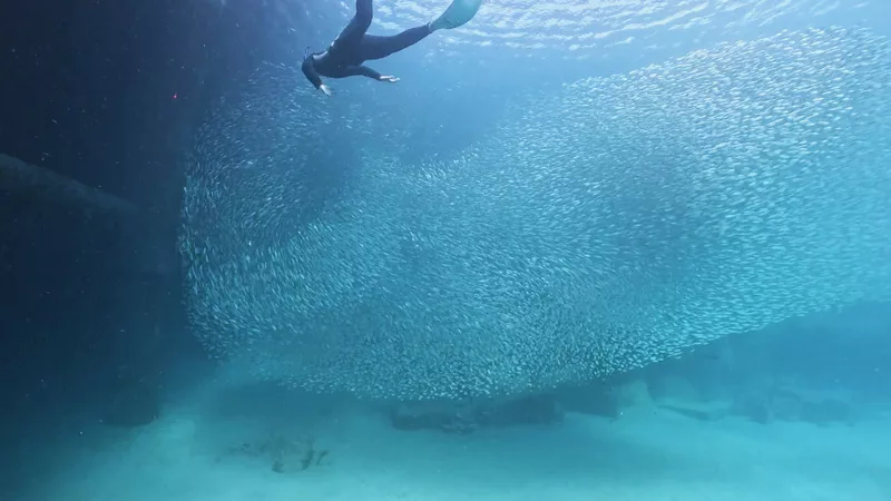 まぁ最近は見慣れてきたので群れが渦を巻くのを待ってみたり、シュノーケルの人が入って大きく移動するのを待って撮ってみたり、いろんなタイミングで遊んでるので飽きはしませんが、これは多分動画でのみ有効なんじゃないかな、なんて思います。