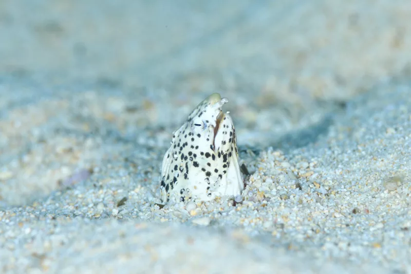 タツノハトコとモンヒモウミヘビからのスタート。20m付近は白い砂地もスッキリした感じです。