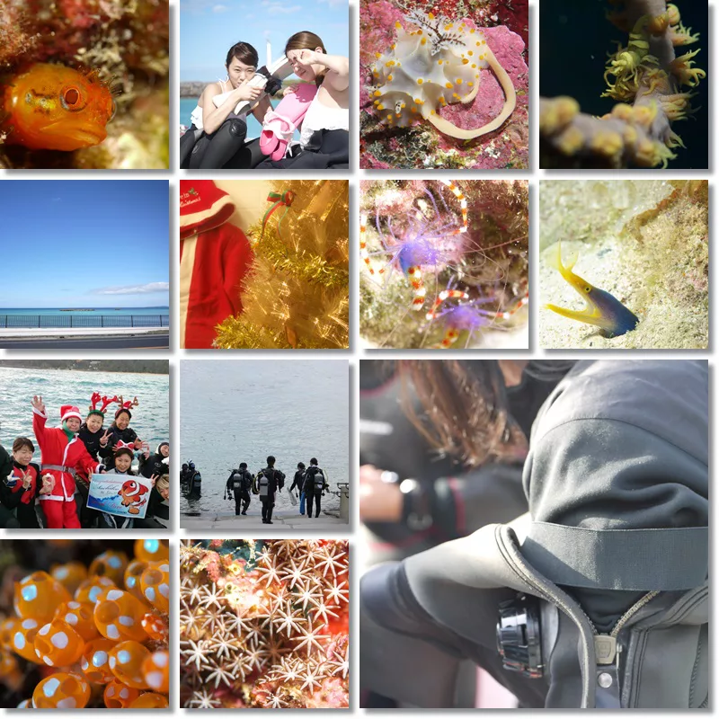 クリスマスのツリーがあるって聞いてたけどなるほど、あった。そんな季節を感じながら、ここでも2人でパチリ♪。ゴリラチョップは水も程々にキレイ、水温も24℃なのでスーツもまぁ、WETでなんとかイケるんじゃないでしょうか、さすがに俺はドライにしましたが(笑)