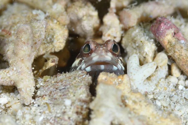 さて、別の方面、マクロです。ジョーフィッシュですね。万座付近では今はいないと思うので新鮮です、一時期より人も少ないので今、いいんじゃないかな