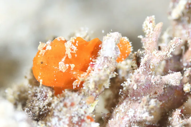 砂地ではオレンジとグリーンのカエルアンコウがまだ元気に過ごしてます。サボテン草はずいぶん泥砂をかぶってハリメダは見当たらなくなってました、回復待ち。カミソリウオはきれいなペアの個体が出てきてましたね。色は地味ですが写真映えしそうなきれいな個体