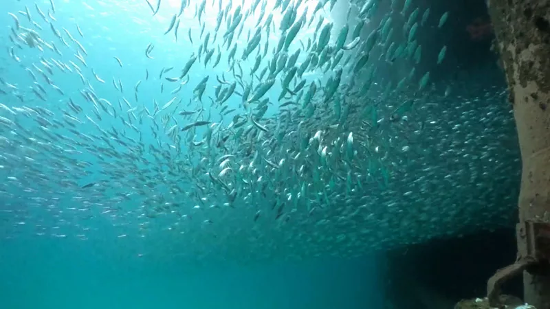 2本目はどれ、桟橋が初めてと思われるので群れものを探しに出かけてきました。どうやら橋の下はイワシ、そして手前の砂地にはアジが群れている様子ですね。人もいないのでライトを使いながら遊んでみました。