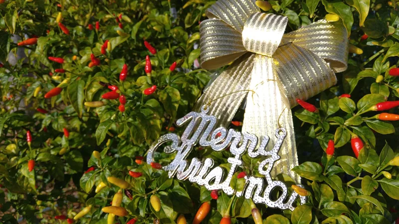 20日までマリンの仕事もこなしながら毎日でしたが年度末、そろそろゆっくり毎日が過ぎる日々を送ってます。今日はクリスマス、遊びに来てくれたゲストとスタート、言い過ぎかもしれませんが温かく、Tシャツでも陸では過ごせそうな感じのコンディションです。今年は島とうがらしが良い実の付き方をしてるのでツリーはとうがらし!。欲しい方は持って行ってね。