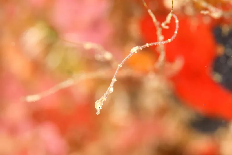 2便は万座ドリームホールへ、今日は地形には入らずドロップオフでマクロ探し。このハリヨウジよ!、普通に細いのに、さらに細いスケスケの個体、これは美しいですね。流れがあると固定せず泳ぎっぱなし、