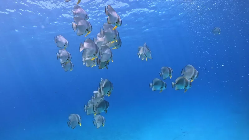 人気のツバメウオ、水が良い時間はとても雰囲気が良いです。どうやら今年は46個体前後この辺にいるようですが、とても浅い場所に集まっています、ダイビングの最初でも最後でも5mぐらいを泳ぐので良い練習になります(笑)。砂地の沖に集まることもあれば、浅いリーフでクリーニングされてる時間帯もあり、安定して集まるのは朝の1便目です。