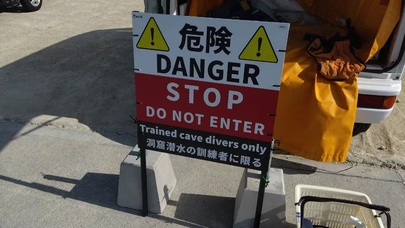 今日はスローライフのYさんと共に水中に看板を設置してきました。夏の終わりに潜水事故があったスネークホールへの看板設置になります。各関係機関とも話が持たれ、出来上がったこの看板を設置しました。ズバリ読んで頂いた内容がすべてです。洞窟潜水の訓練者に限る、という文言がありますので、この看板を見た一般ファンダイバーは入らないようにお願い致します。興味本位での不用意な接近も避けましょう。
