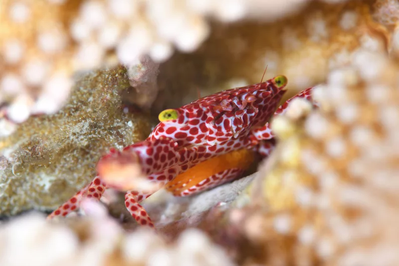 オオアカホシサンゴガニの抱卵個体。今時期は甲殻類の脱皮や抱卵、そしてこの大潮ターンの放精などがいろんなところで見られます、写真で刻むもよし、動画で撮るもよし、楽しみ方いっぱいです。