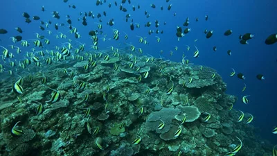 2月中旬から4月中旬にかけて万座のダイブサイトに集まるツノダシの群れを見に出掛けよう